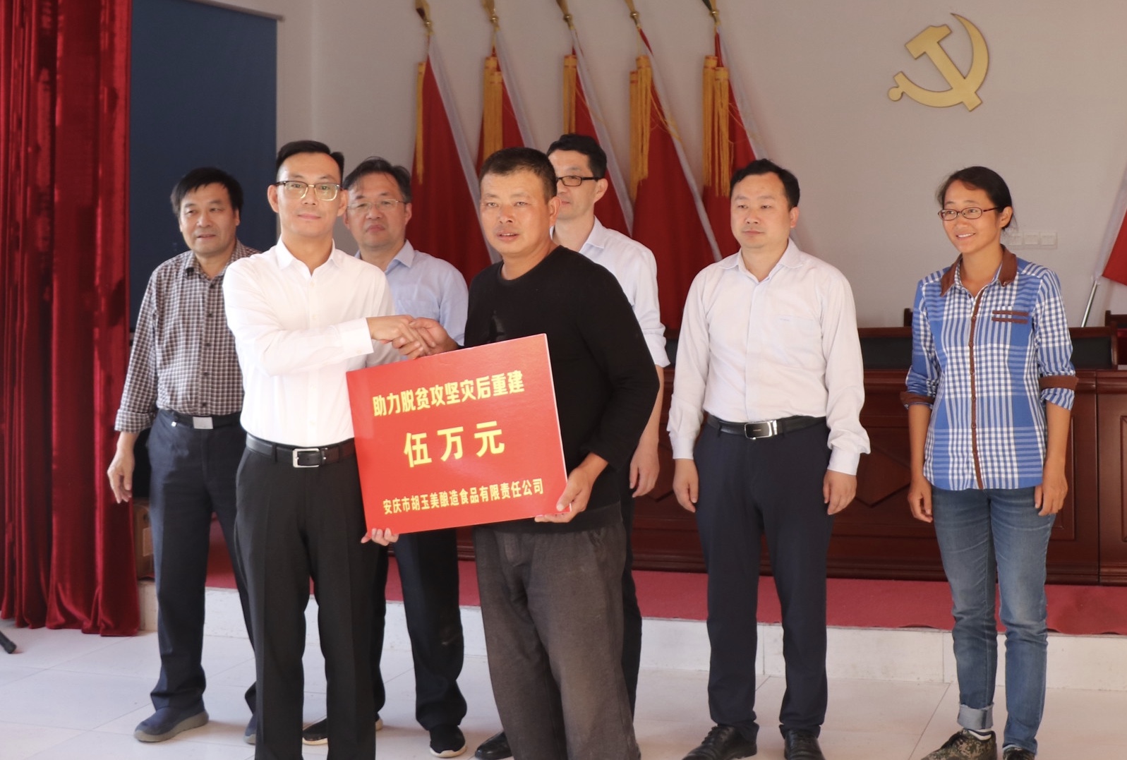 9月28日下午,市政協(xié)副主席、市工商聯(lián)主席王曉輝帶領(lǐng)胡玉美公司前往望江縣涼泉鄉(xiāng)壬辰占村,參加市工商聯(lián)助力脫貧攻堅(jiān)捐贈(zèng)儀式,市工商聯(lián)副主席王文生陪同。公司董事長(zhǎng)、黨委書(shū)記、市工商聯(lián)副主席、市政協(xié)委員顏志勇代表胡玉美公司向壬辰占村捐贈(zèng)50000元愛(ài)心善款,以支持當(dāng)?shù)刈龊脼?zāi)后重建和鞏固脫貧成果等工作。望江縣副縣長(zhǎng)徐四新,涼泉鄉(xiāng)黨委書(shū)記劉秀芳,縣工商聯(lián)主席汪旺年接受捐贈(zèng)。