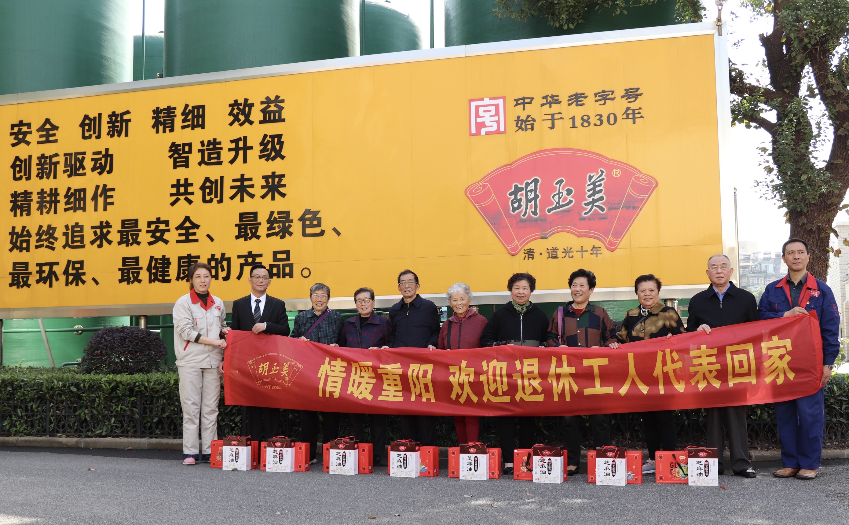 老師傅們走遍了廠區(qū)的每一個角落:辦公室、車間、曬場……細細尋訪這些年來公司的新變化??吹皆?jīng)工作的崗位,他們頓時勾起了青春奮斗年代無數(shù)美好的回憶!大家圍坐一堂,熱烈暢談公司多年來的發(fā)展歷程。董事長顏志勇詳細介紹了公司經(jīng)營生產(chǎn)情況、提質增效的舉措,誠摯地感謝老同志們?yōu)楣镜陌l(fā)展奉獻了青春,衷心地祝福老同志們身體健康、闔家幸福,還送上了精心準備的胡玉美“醬”心禮。老師傅們看到公司翻天覆地的變化,感慨萬千,他們不由地贊嘆,現(xiàn)在環(huán)境比以前更敞亮了,勞動強度也大大減輕了。傳統(tǒng)的老企業(yè)里也擁有了智能機器人這樣先進的設備,這令他們激動不已,紛紛拿出手機拍照留念。驚人的騰飛速度,他們看在眼中,喜在眉梢,臨別時祝愿公司蒸蒸日上,更上一層樓!