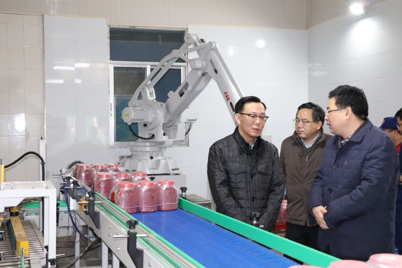 調研期間,楊旭東一行實地察看了胡玉美部分生產車間,看到傳統(tǒng)企業(yè)已擁有智能碼垛機器人等先進自動化設備,楊局長盛贊胡玉美善于突破,敢于創(chuàng)新。隨后,楊局長與董事長顏志勇進行了深入的座談交流,他高度贊揚公司以黨建為引領,勇?lián)鐣熑危谝咔楹脱辞榈碾p重影響下逆勢突圍,取得較為不錯的成績,并強調要提振信心,2021年厚積薄發(fā),再上臺階,再譜新篇!