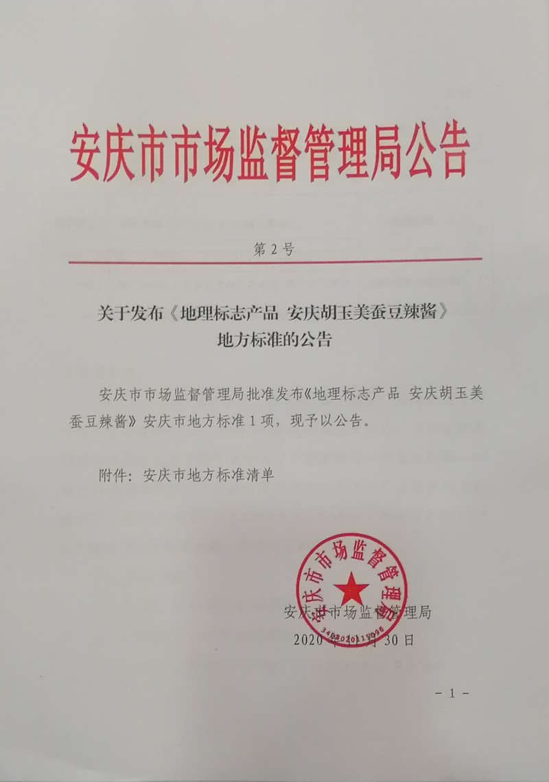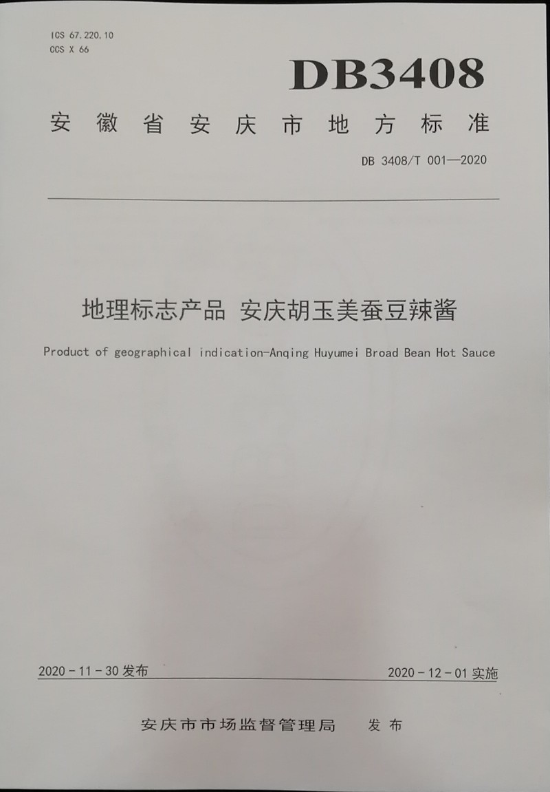 《地理標(biāo)志產(chǎn)品 安慶胡玉美蠶豆辣醬》發(fā)布