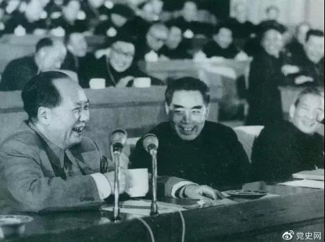 ▲1962年初,毛澤東和周恩來、陳云在中共中央召開的擴(kuò)大的中央工作會(huì)議(即七千人大會(huì))上。