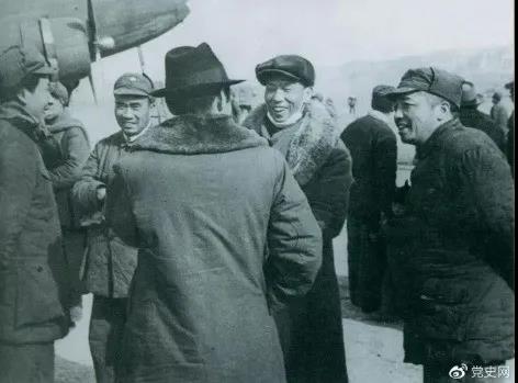 ▲1946年2月19日,毛澤東等在延安機(jī)場(chǎng)迎接從重慶回延安匯報(bào)工作的周恩來(lái)。
