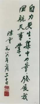 ▲1986年2月20日,陳云為祝賀我國第三顆通訊衛(wèi)星發(fā)射成功給國防科工委題詞。