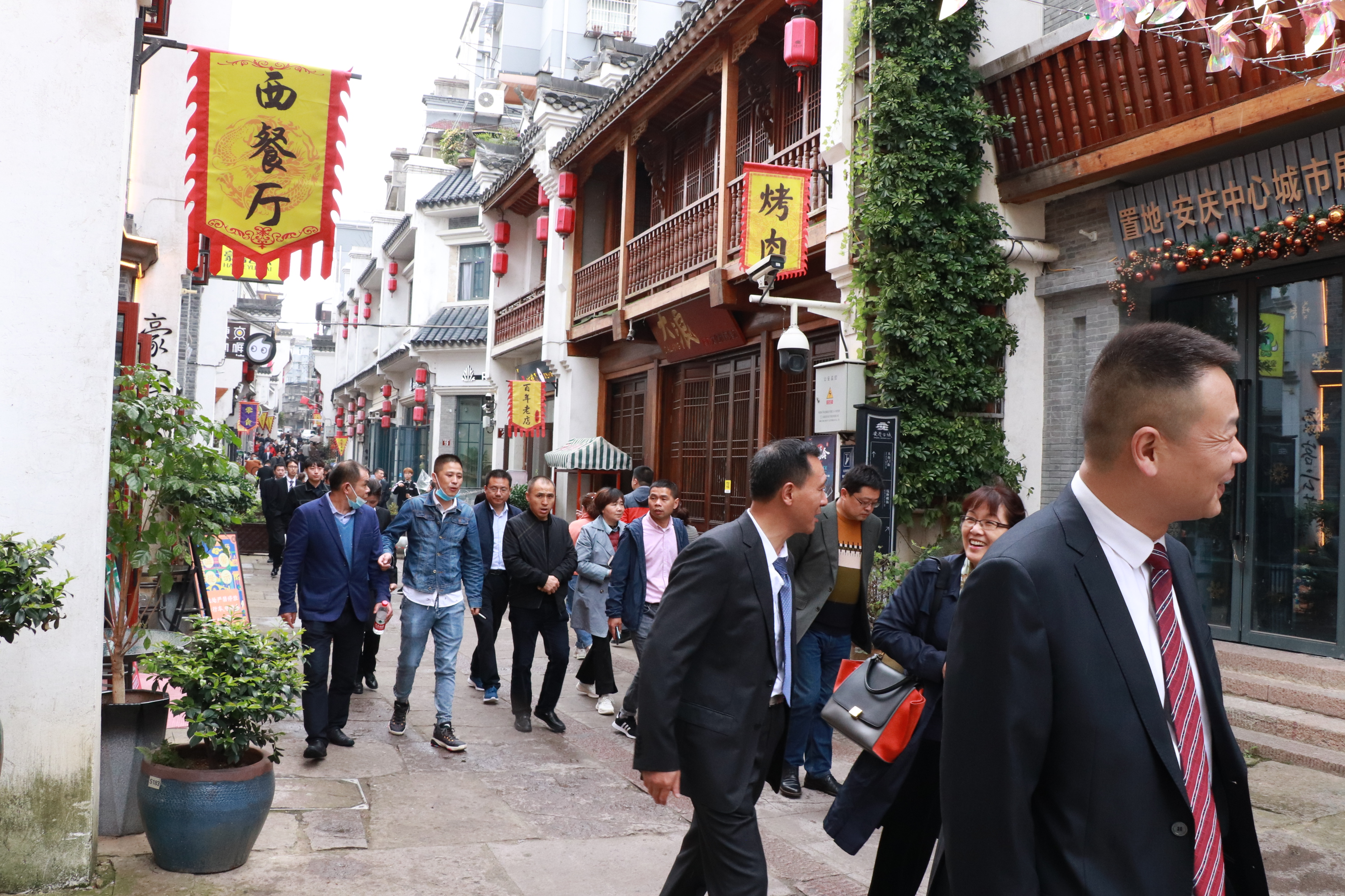 回家的親友們首站來到千年古剎迎江寺,他們領(lǐng)略到黃梅故里第一寶剎的風(fēng)貌,倍感古城的天地之靈氣,人文之輝光。他們還游覽了倒扒獅古城老街胡玉美四牌樓老店及胡玉美黃土坑?xùn)|路紅樓店。粉墻黛瓦馬頭墻的徽風(fēng)皖韻與尚儒誠信的企業(yè)文化水乳交融,一派和諧,店內(nèi)古樸的醬缸、塵封的照片、有近兩百年歷史的石箍門,令經(jīng)銷商朋友們身臨其境地感受到胡玉美風(fēng)雨百年、接續(xù)奮斗的傳承之路。在安慶印象非遺傳承體驗館及安慶博物館內(nèi)胡玉美展區(qū),他們紛紛駐足,拍照留念,由衷贊嘆胡玉美不愧是古城安慶一張亮麗的名片!