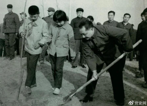 鄧小平在北京十三陵參加義務植樹勞動時對中直機關干部說:植樹造林,綠化祖國,是建設社會主義,造福子孫后代的偉大事業(yè),要堅持二十年,堅持一百年,堅持一千年,要一代一代永遠干下去。
