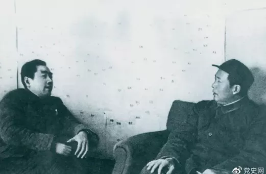 圖為毛澤東和周恩來在河北西柏坡。