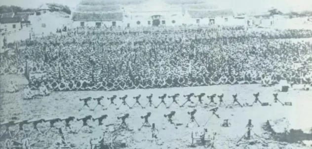▲1932年4月20日,由紅一軍團和紅五軍團組成的東路軍攻占漳州,圖為攻占漳州后的部隊情形。