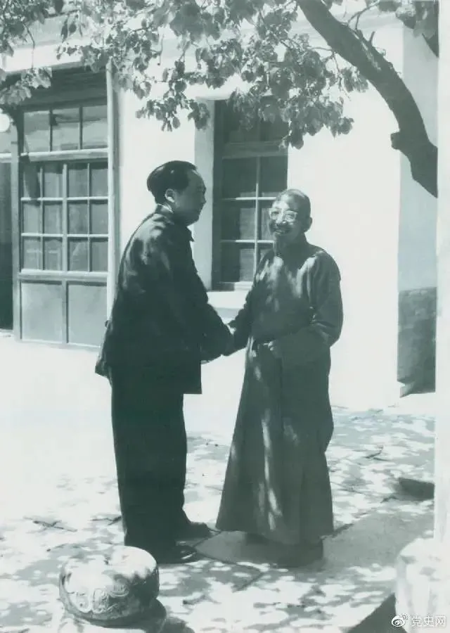 ▲圖為毛澤東同老朋友、民主人士柳亞子在北平重逢。