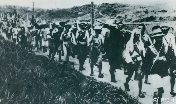 ▲1931年5月16日至31日,紅一方面軍在毛澤東、朱德指揮下,連續(xù)打了5個勝仗,殲敵3萬余人,繳槍2萬余支,打退了國民黨軍隊的第二次“圍剿”。圖為行軍中的紅軍。