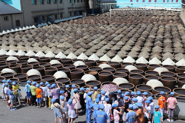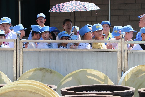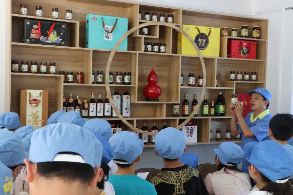 在公司二樓會(huì)議室,同學(xué)們認(rèn)真聆聽著胡玉美近兩百年波瀾壯闊的奮斗歷程、初心不改的工藝傳承,并觀看了胡玉美企業(yè)宣傳片及蠶豆辣醬非遺制作技藝宣傳片,對(duì)“老字號(hào)”的堅(jiān)守與創(chuàng)新有了更深一步的了解。隨后,盡管頂著烈日“烤”驗(yàn),師生們依然興致勃勃地參觀了非遺技藝操作車間及曬場(chǎng),近距離感受胡玉美蠶豆辣醬的非遺制作技藝,并暢享自己的所學(xué)所想,成就感油然而生。一場(chǎng)匠心獨(dú)運(yùn)的非遺之旅,令莘莘學(xué)子領(lǐng)略到“百年老字號(hào)”的歷史底蘊(yùn),非遺的獨(dú)特魅力在孩子們的心中悄然生根發(fā)芽。