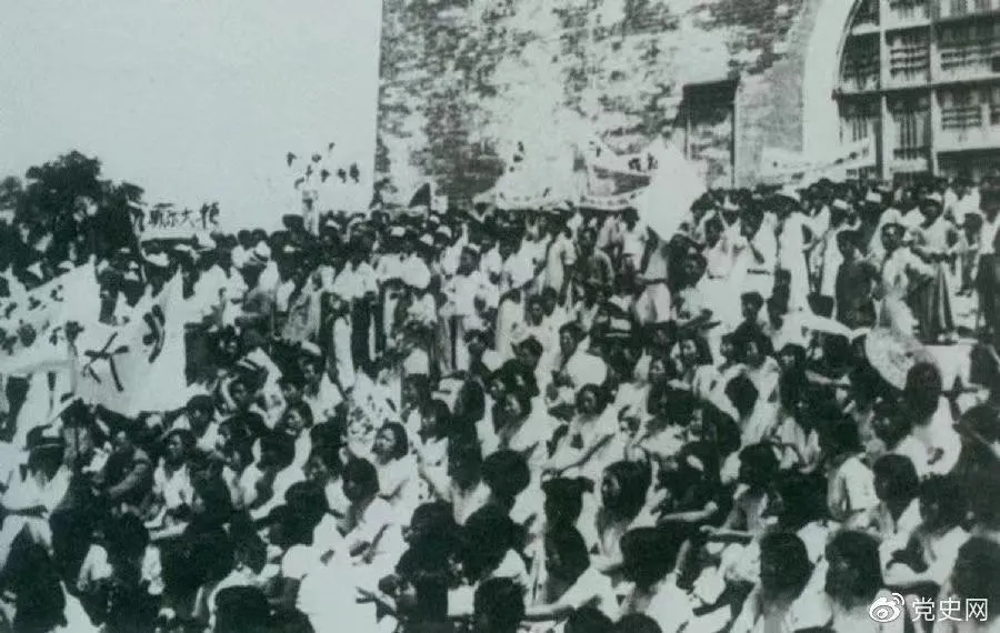 ▲1936年6月13日,北平學(xué)生與市民在鼓樓前舉行聲勢(shì)浩大的抗日集會(huì)。