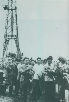 ▲1962年6月,周恩來到大慶視察。這是在1202鉆井隊現(xiàn)場參觀。