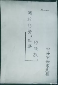 ▲1946年7月,中共中央東北局通過了由陳云起草的《關(guān)于形勢與任務(wù)的決議》,確立了創(chuàng)建根據(jù)地與進(jìn)行長期艱苦戰(zhàn)爭的方針。該決議經(jīng)中共中央修改和批準(zhǔn)后,于8月12日正式發(fā)出。圖為決議的翻印本。
