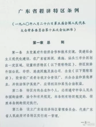 ▲1980年8月26日,第五屆全國人大常委會第十五次會議批準《廣東省經(jīng)濟特區(qū)條例》。