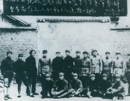 ▲1927年9月9日,以毛澤東為書記的中共湖南省委前敵委員會,領(lǐng)導(dǎo)工農(nóng)革命軍第一師發(fā)動湘贛邊界秋收起義。圖為毛澤東在延安和當(dāng)年參加秋收起義的部分同志合影。