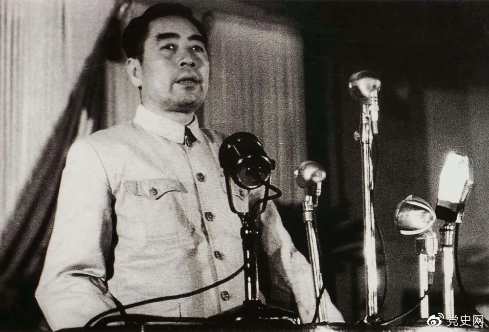 ▲1949年9月22日,周恩來在中國人民政治協(xié)商會議第一屆全體會議上作關(guān)于共同綱領(lǐng)草案的起草經(jīng)過和特點(diǎn)的報告。