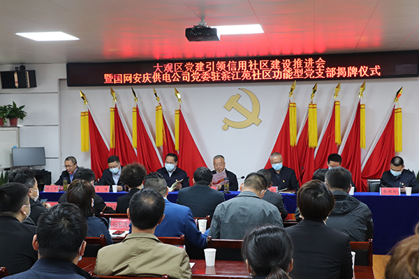 4月15日,大觀區(qū)黨建引領(lǐng)信用社區(qū)建設(shè)推進(jìn)會議暨國網(wǎng)安慶供電公司功能型黨支部揭牌儀式圓滿舉行。市委常委、組織部長李明月出席儀式并作重要講話,市委組織部副部長、市委非公工委書記桂銳,大觀區(qū)委書記潘功發(fā),中國移動安慶分公司總經(jīng)理王偉,國網(wǎng)安慶供電公司黨委書記、副總經(jīng)理鐘成元參加儀式,區(qū)委常委、組織部長劉小平主持會議。公司副董事長蔣立勝,技術(shù)總監(jiān)、大觀區(qū)人大代表昝幼龍等聯(lián)建商家代表及各主要負(fù)責(zé)人參加儀式。儀式上,公司獲得“信用社區(qū)建設(shè)聯(lián)建單位”授牌。