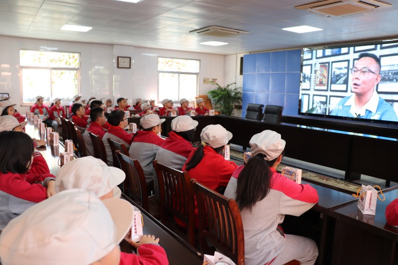走進(jìn)廠區(qū),師生們緊跟公司技術(shù)人員,踏上體驗(yàn)非遺技藝之旅。來到曬場,大家圍繞在醬缸旁,聽副總經(jīng)理昝幼龍講解蠶豆辣醬非遺制作技藝知識:“曬醬是一件粗中有細(xì)的工藝,時間、咸淡、顏色都要依時令氣候進(jìn)行細(xì)微的調(diào)整……”,現(xiàn)場醬香陣陣,沁人心脾,眾人皆贊嘆不已。在公司二樓會議室,師生們通過觀看胡玉美蠶豆辣醬非遺制作技藝宣傳片,深悟“老字號”百年來堅守品質(zhì)與探索創(chuàng)新的不易,同時還收獲了公司精心準(zhǔn)備的胡玉美“醬”心禮。