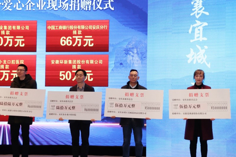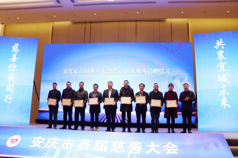 12月18日下午,安慶市首屆慈善大會(huì)在安慶栢景國(guó)際酒店隆重召開,在愛心企業(yè)現(xiàn)場(chǎng)捐贈(zèng)儀式上,公司黨委書記、董事長(zhǎng)顏志勇代表胡玉美再次捐資50萬元,于市慈善總會(huì)設(shè)立胡玉美冠名基金。副總經(jīng)理昝幼龍陪同參會(huì)。