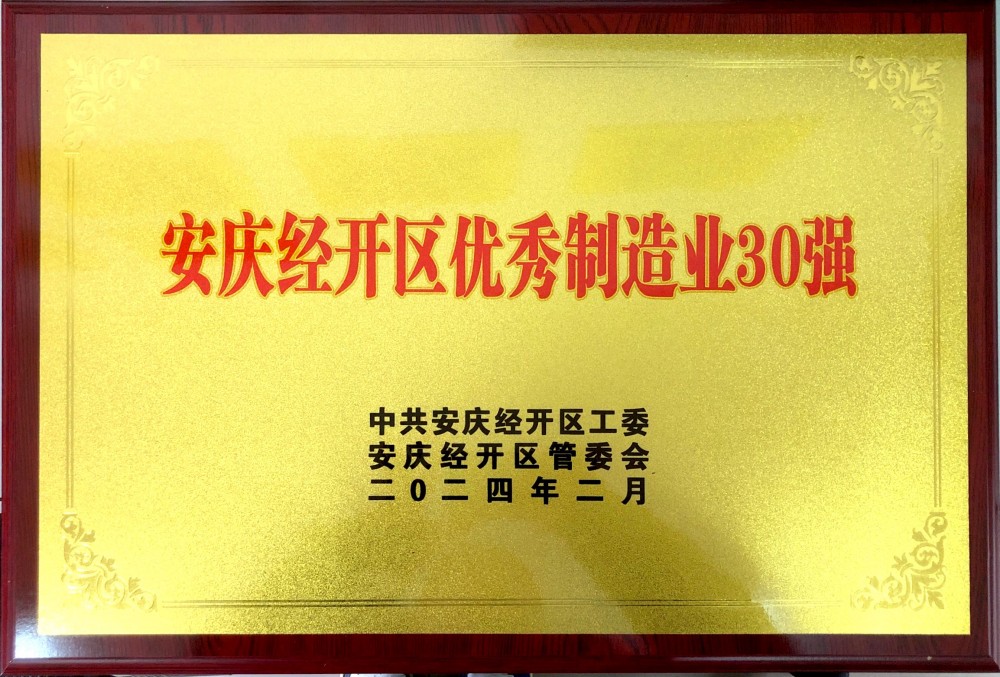 喜報(bào)!公司榮膺“2023年度安慶經(jīng)開區(qū)優(yōu)秀制造業(yè)30強(qiáng)”