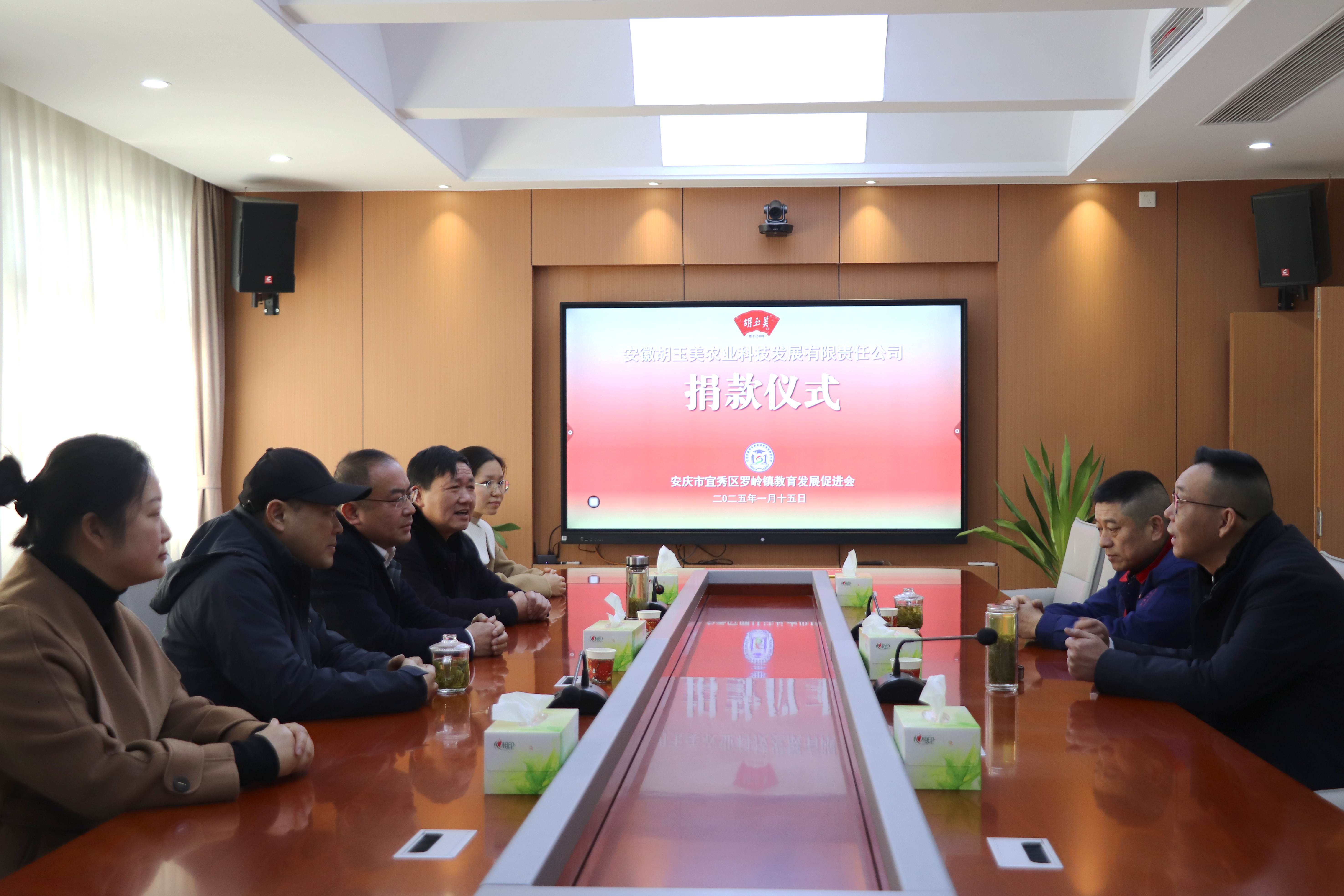 1月15日,公司黨委書記、董事長顏志勇一行赴羅嶺鎮(zhèn)黨性教育基地,參加安徽胡玉美農(nóng)業(yè)科技發(fā)展有限責(zé)任公司向羅嶺鎮(zhèn)教育發(fā)展促進會捐贈儀式。羅嶺鎮(zhèn)黨委書記何承海主持捐贈儀式,羅嶺鎮(zhèn)教育發(fā)展促進會會長龍道權(quán)、秘書長朱仁勝接受捐贈。