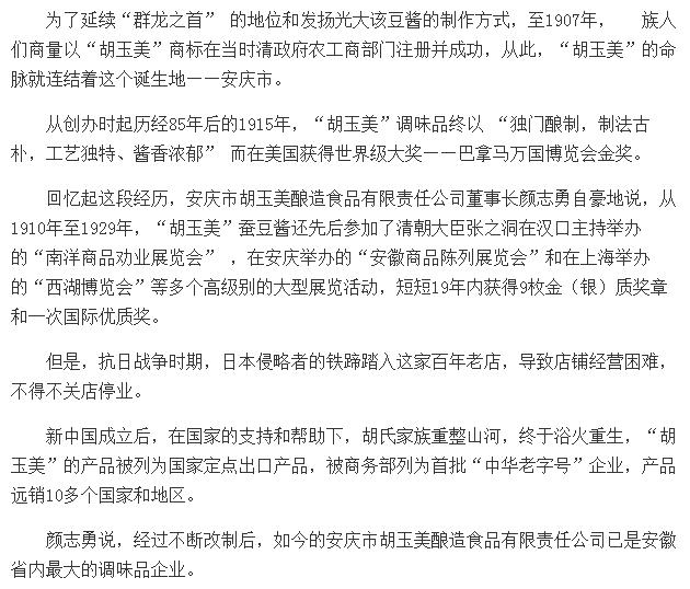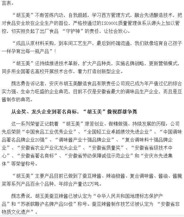 人民論壇網(wǎng)刊文報道——《胡玉美董事長顏志勇:高高飄揚(yáng)的不僅僅是巴拿馬金獎》
