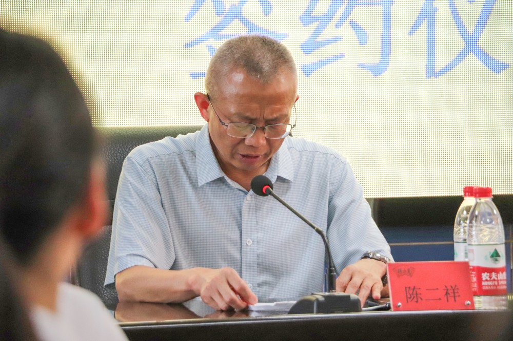 陳二祥院長(zhǎng)對(duì)胡玉美始終心系教育事業(yè)的高尚情懷表示感謝,并簡(jiǎn)要介紹了安徽黃梅戲藝術(shù)職業(yè)學(xué)院的發(fā)展情況。陳二祥指出,此次捐贈(zèng)是百年醬香與百年戲韻深情相擁,這不僅是物質(zhì)層面的慷慨相助、更是一次跨越百年的文化共鳴。學(xué)院將以此次捐贈(zèng)為契機(jī),進(jìn)一步加強(qiáng)與胡玉美公司的交流與合作,不斷優(yōu)化人才培養(yǎng)模式,提高教育教學(xué)質(zhì)量,用優(yōu)異的成績(jī)回報(bào)胡玉美公司的深情厚誼,回報(bào)社會(huì)的關(guān)愛與支持。