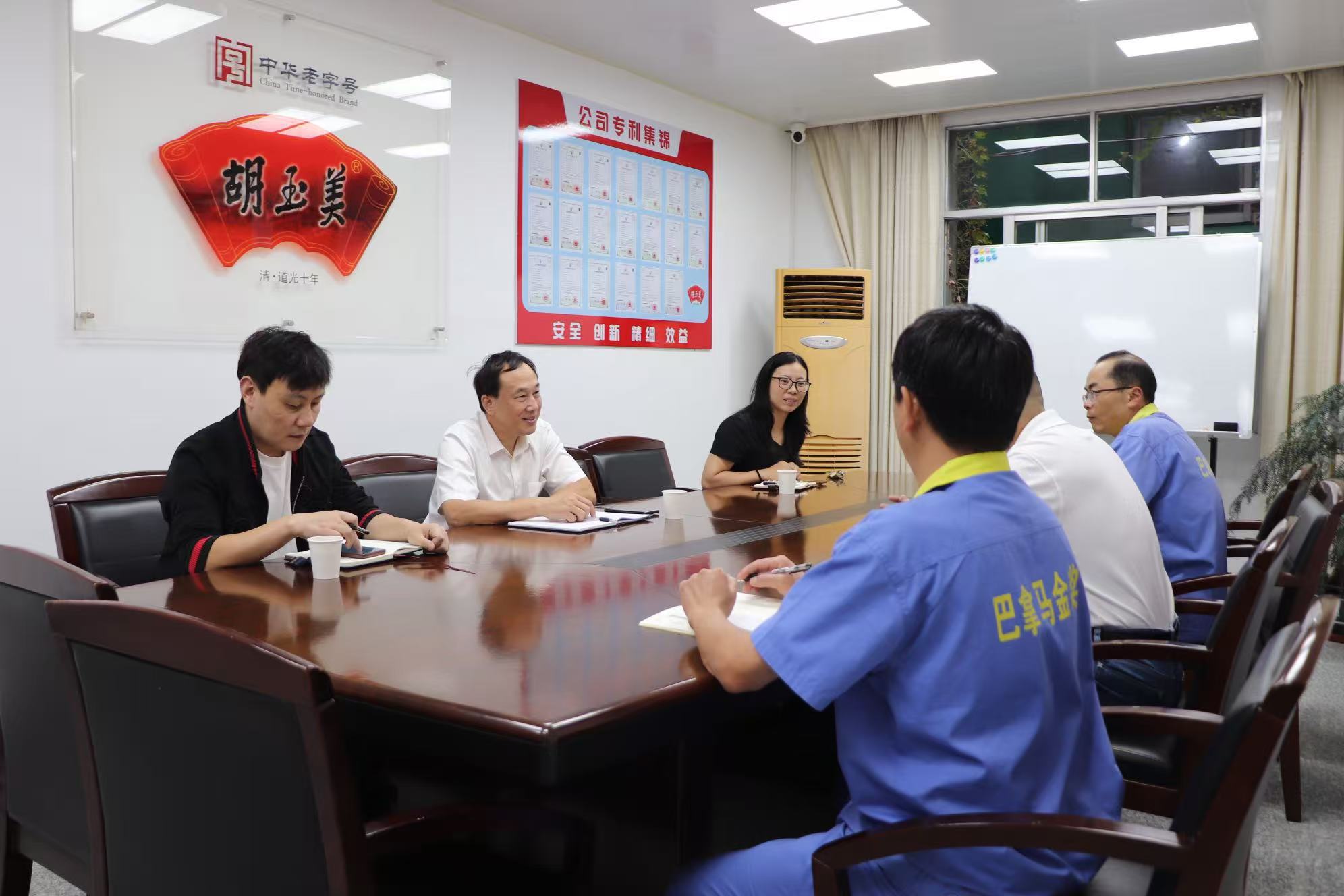 10月13日下午,安慶市經(jīng)開區(qū)市場監(jiān)管局局長李怡和一行蒞臨公司調(diào)研指導,公司董事長顏志勇熱情接待,副總經(jīng)理昝幼龍陪同。