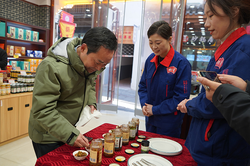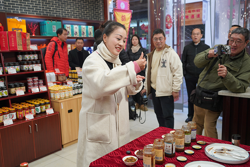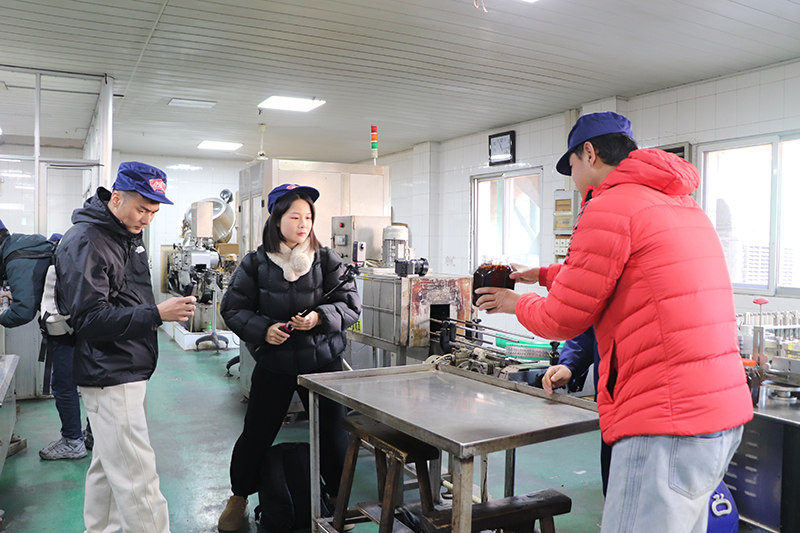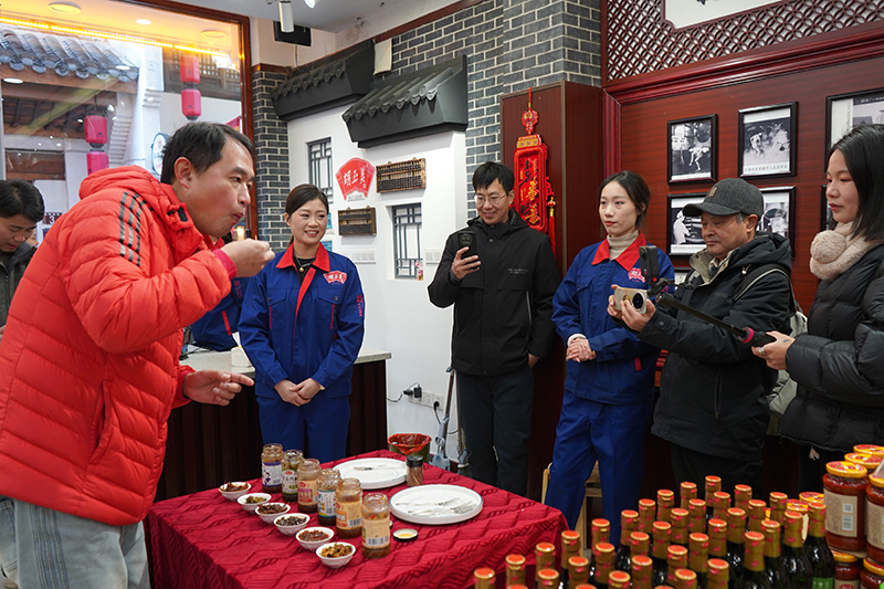 自媒體聯(lián)盟一行先后參觀了辣油椒醬生產(chǎn)車間、天然釀曬場、復(fù)合調(diào)味醬生產(chǎn)車間、公司匠心傳承照片墻和胡玉美四牌樓店,深入了解胡玉美非遺釀造技藝,挖掘老字號(hào)背后的匠心故事和文化內(nèi)涵,推動(dòng)傳統(tǒng)技藝與現(xiàn)代傳播深度融合。
