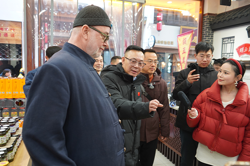 1月3日,安慶自媒體聯(lián)盟理事長汪讓之率安慶自媒體聯(lián)盟30多位達(dá)人及來自德國的國際友人到訪中華老字號(hào)胡玉美,開展“新年尋味老字號(hào)——走進(jìn)胡玉美”主題活動(dòng)。安慶市委網(wǎng)信辦有關(guān)領(lǐng)導(dǎo)蒞臨現(xiàn)場指導(dǎo),公司董事長顏志勇、副總經(jīng)理昝幼龍給予了熱情接待。