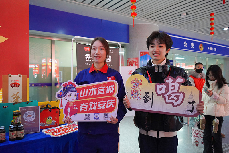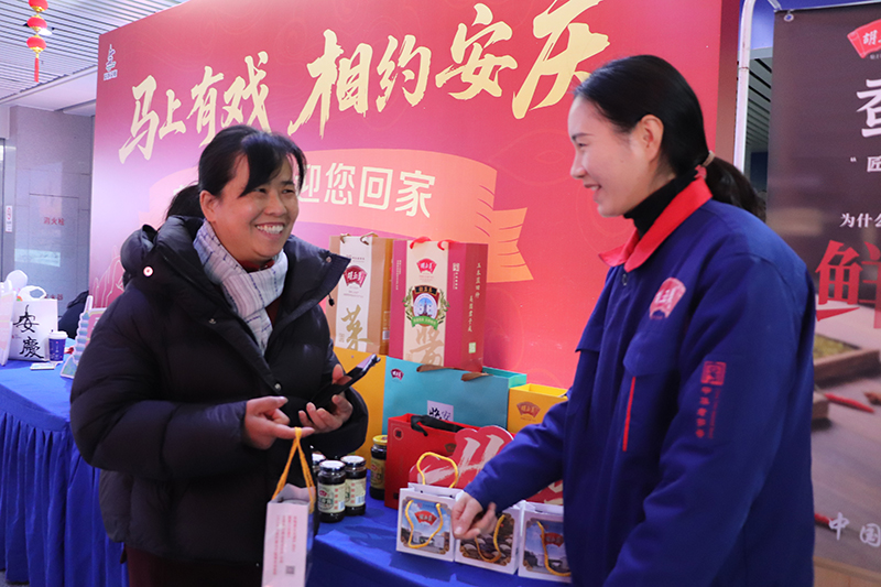 2月9日,春節(jié)臨近,年味漸濃。中華老字號(hào)胡玉美在安慶動(dòng)車站、安慶機(jī)場(chǎng)開(kāi)展以“傳遞家鄉(xiāng)溫暖 禮贈(zèng)歸途游子”為主題的春運(yùn)接站活動(dòng),為返鄉(xiāng)游子送上非遺醬品與新春祝福,鋪就一條溫暖的回家路。