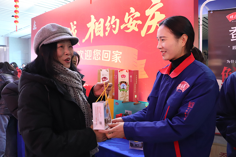 活動(dòng)期間,胡玉美在安慶動(dòng)車站出站口、安慶機(jī)場(chǎng)到達(dá)口設(shè)立了暖心站點(diǎn),集中展示公司醬界臻品,并精心準(zhǔn)備了滿載鄉(xiāng)情的醬心好禮,向返鄉(xiāng)游子免費(fèi)贈(zèng)送,讓他們感受到胡玉美的溫情問(wèn)候。一位返鄉(xiāng)游子表示:“一出站就看到家鄉(xiāng)的老牌子,聞到熟悉的醬香,感覺(jué)特別親切。”