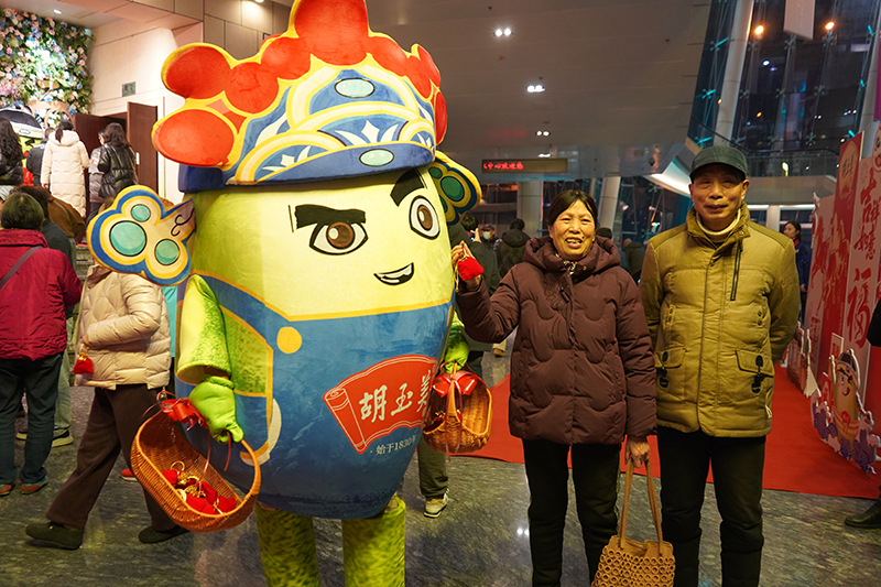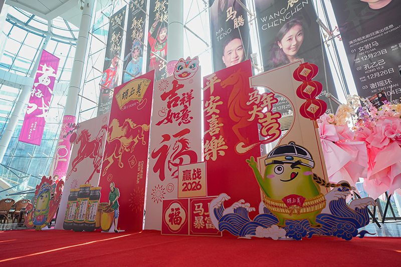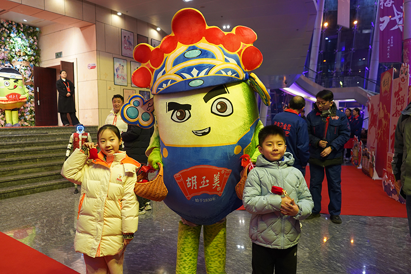 作為胡玉美與市民共慶新春的重要互動環(huán)節(jié),晚會開場前,胡玉美為現(xiàn)場觀眾精心準(zhǔn)備了新春福袋,由四位胡玉美專屬IP“蠶小豆”派發(fā),將這份融合品牌溫度與醬心的新春祝福,傳遞到每一位觀眾手中。晚會還特別設(shè)置了胡玉美產(chǎn)品展示區(qū)及專屬打卡墻,讓觀眾近距離感受品牌深厚的文化底蘊(yùn)與獨(dú)特的非遺技藝。