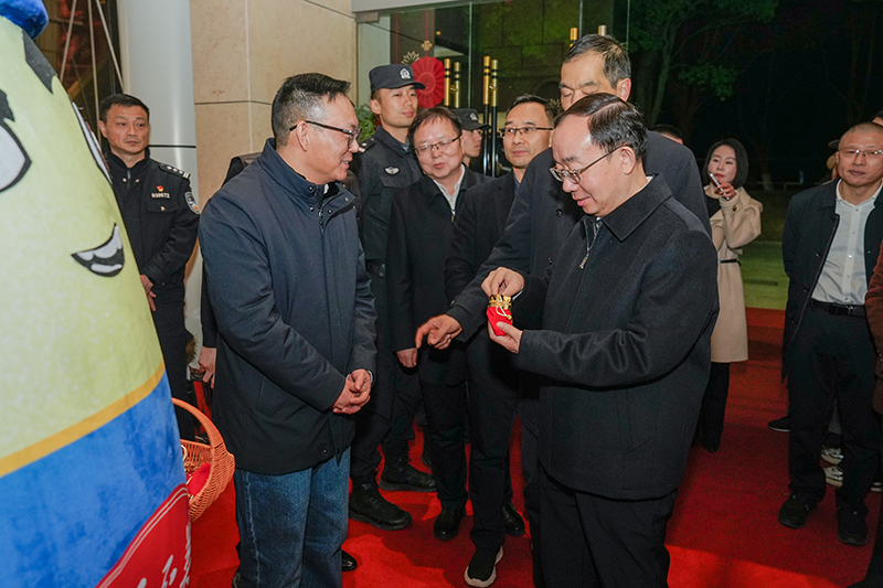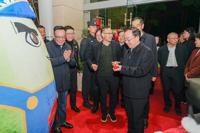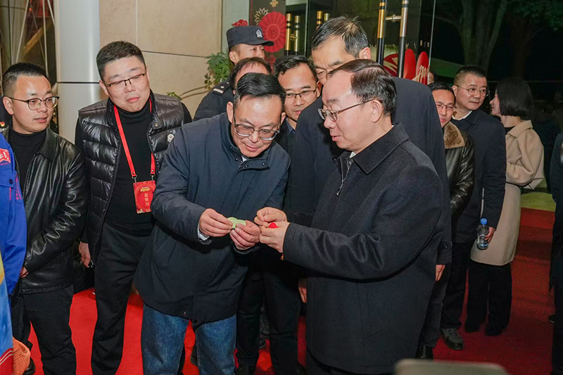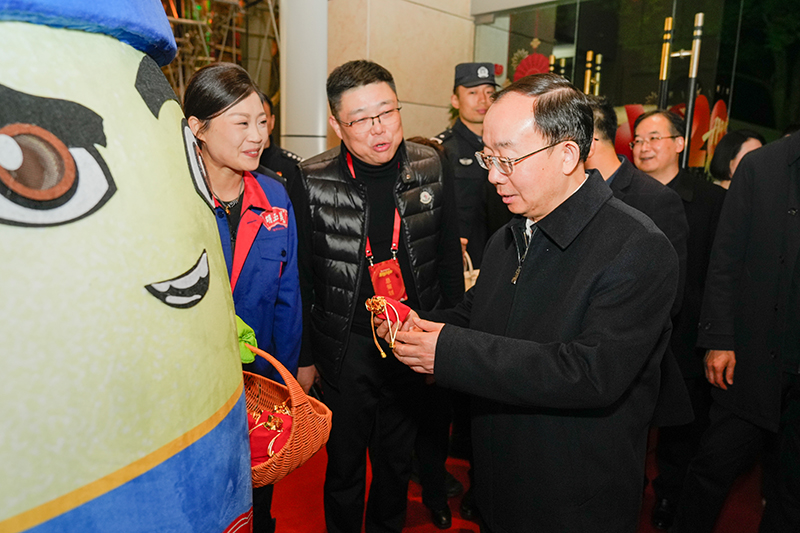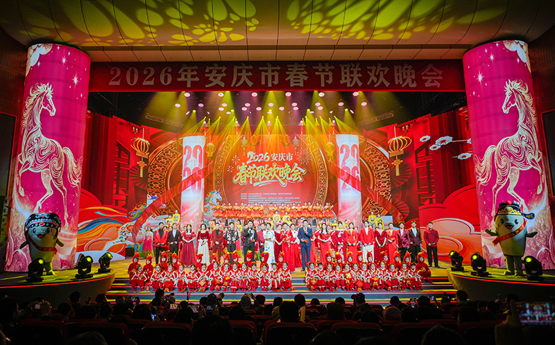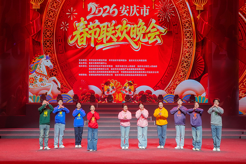 2月12日晚,2026年安慶市春節(jié)聯(lián)歡晚會在市黃梅戲藝術(shù)中心精彩上演。本場晚會由市委宣傳部、市委網(wǎng)信辦、市文旅局主辦,市新聞傳媒中心承辦,安慶市胡玉美釀造食品有限責(zé)任公司特別贊助。市委書記孟景偉,市委副書記、市長張君毅,市人大常委會主任周東明,市政協(xié)主席花家紅,中國石化安慶分公司總經(jīng)理朱兵,市委副書記廖強(qiáng)等與市民觀眾一同觀看演出。公司黨委書記、董事長、總經(jīng)理顏志勇受邀觀看演出,并代表胡玉美全體員工向孟景偉送上新春福袋,祝愿安慶蓬勃發(fā)展、蒸蒸日上,祝福全市人民新春愉快、馬到功成。