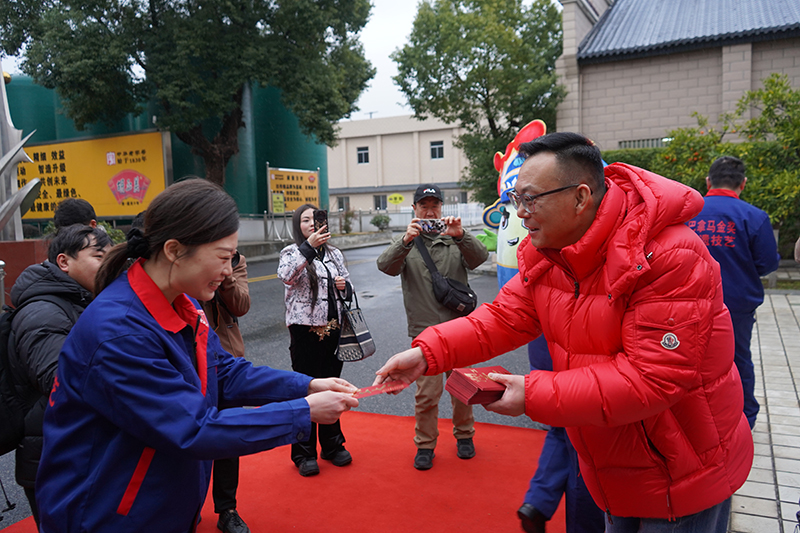 金馬踏春來,開工業(yè)長虹。2月24日,農(nóng)歷正月初八,公司開工大吉好運(yùn)盈!鏗鏘有力的鑼鼓聲敲響鴻運(yùn),祥龍騰躍、氣勢磅礴,醒獅歡騰、神采飛揚(yáng),為公司帶來滿滿的福運(yùn)與新年的美好祝愿。公司董事長顏志勇手持滿載祝福的開工紅包,逐一向員工發(fā)放,掌間傳遞時,溫情與關(guān)懷流淌在每一位員工心中。新的一年,胡玉美必將如駿馬奔騰,勇攀高峰,再創(chuàng)佳績!