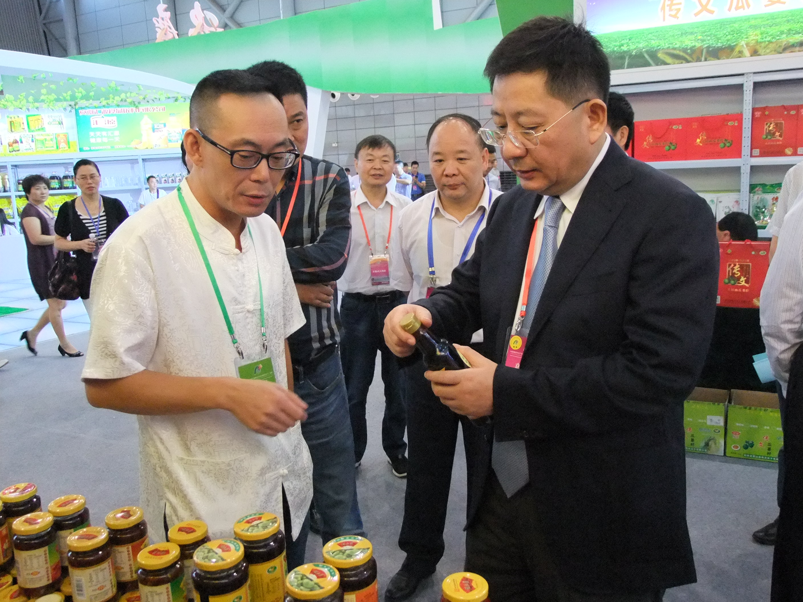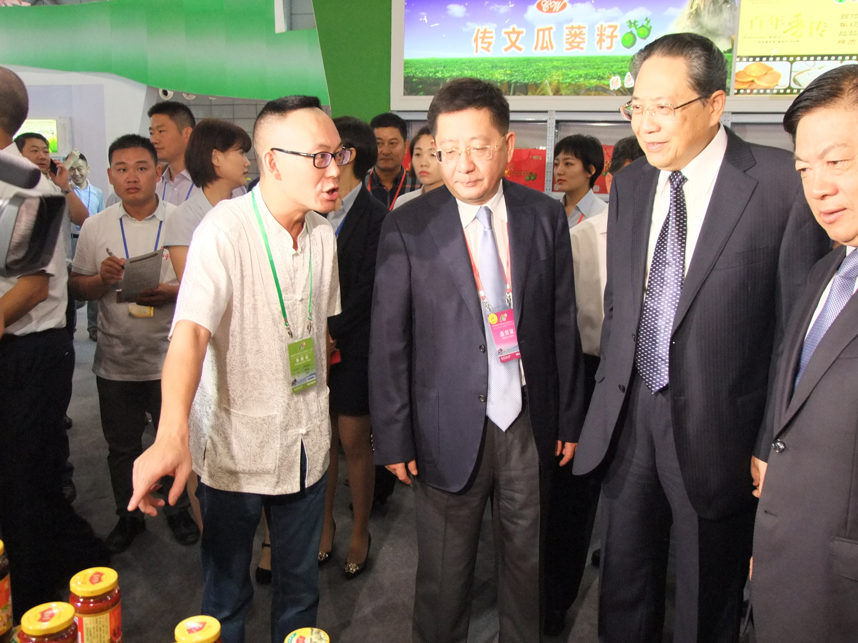 2017年9月15日,2017中國(guó)安徽(合肥)名優(yōu)農(nóng)產(chǎn)品暨農(nóng)業(yè)產(chǎn)業(yè)化交易會(huì)在合肥盛大開(kāi)幕。省委書(shū)記李錦斌、省長(zhǎng)李國(guó)英、省政協(xié)主席徐立全、省委副書(shū)記信長(zhǎng)星等領(lǐng)導(dǎo)在安慶市委書(shū)記魏曉明的陪同下親臨胡玉美展區(qū),期間省委書(shū)記李錦斌向董事長(zhǎng)顏志勇詢(xún)問(wèn)了產(chǎn)品布展及企業(yè)運(yùn)營(yíng)情況,并拿起一瓶胡玉美蠶豆醬仔細(xì)觀看、現(xiàn)場(chǎng)推介。