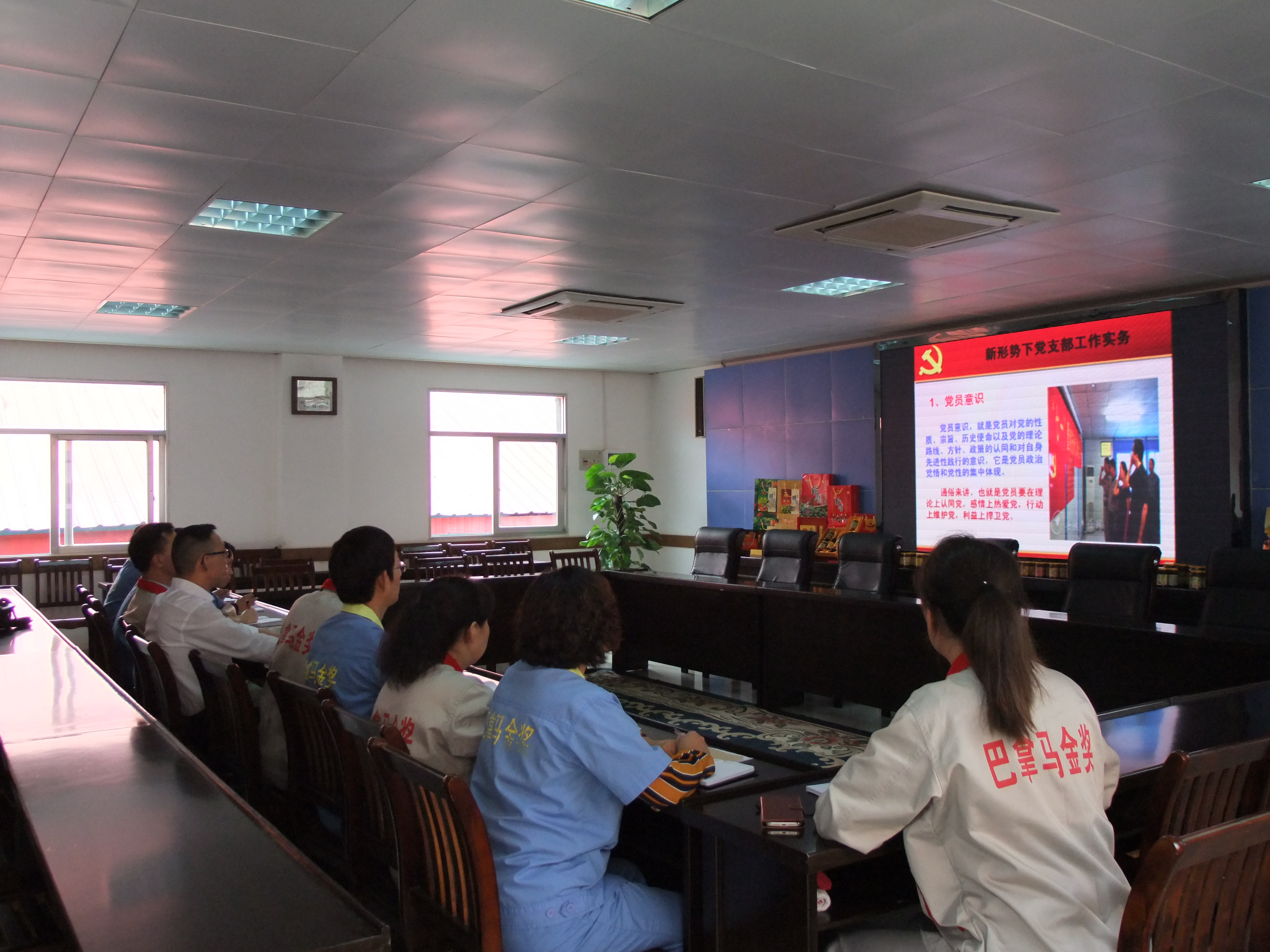 黨委書(shū)記顏志勇和大家一起觀看培訓(xùn)用的演示文稿