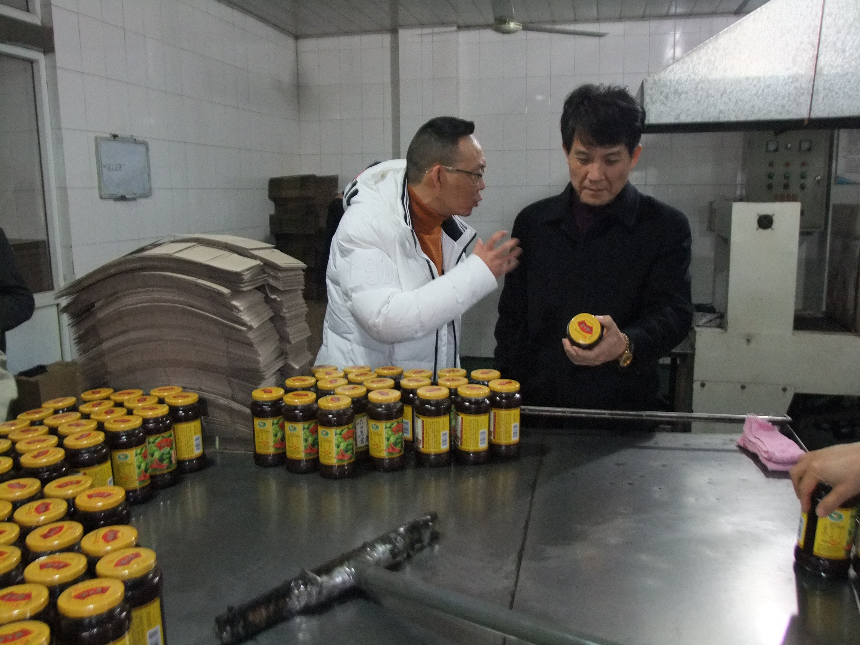 公司董事長(zhǎng)、黨委書記顏志勇陪同走訪組一行參觀公司蠶豆醬車間
