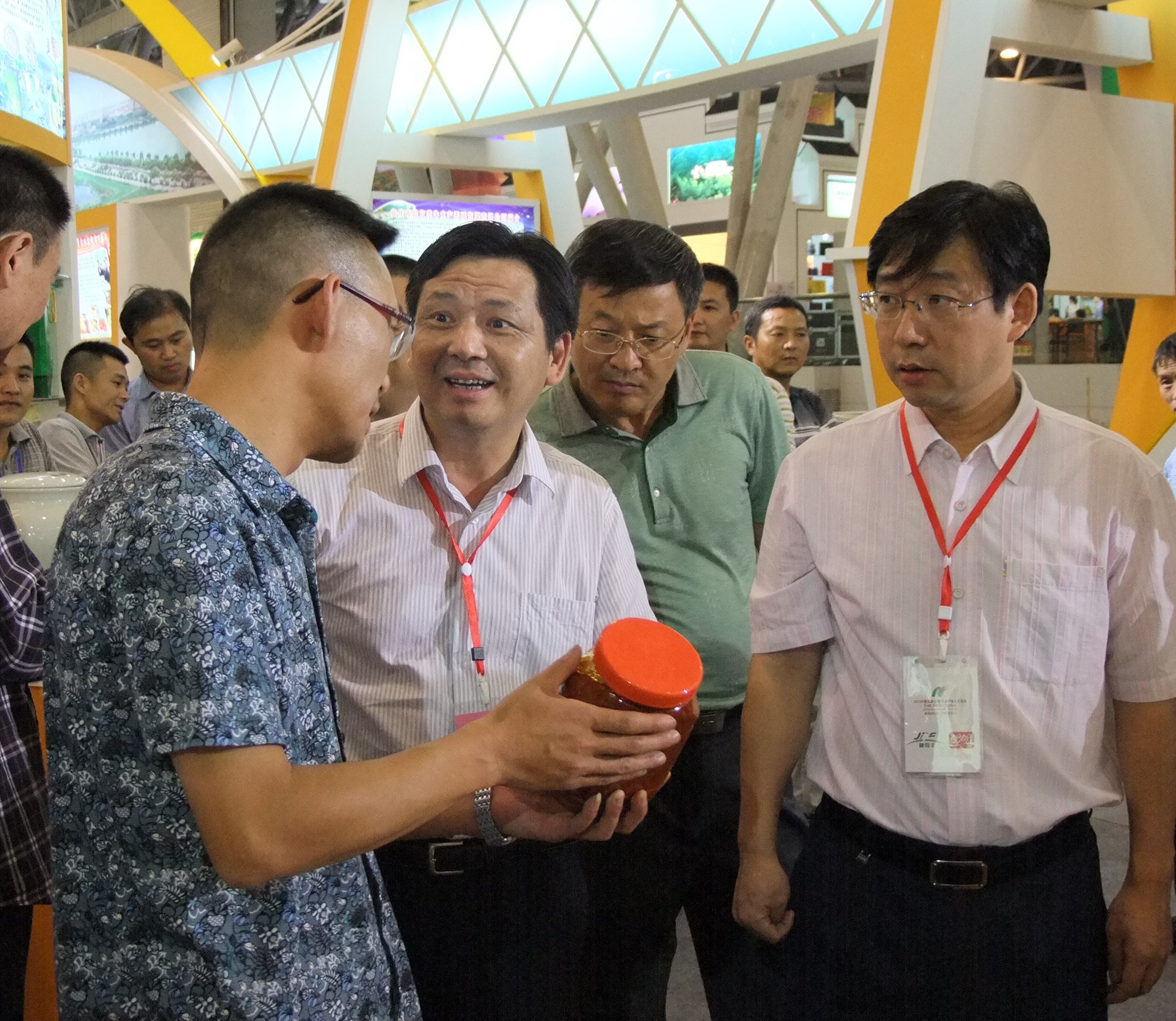 董事長(zhǎng)顏志勇向宣城市委書記陶方啟(中間) 安慶市委常委、宣傳部部長(zhǎng)董磊(右邊)等領(lǐng)導(dǎo)介紹公司產(chǎn)品