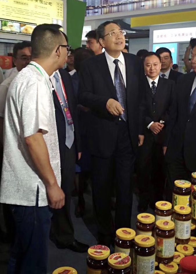董事長(zhǎng)顏志勇向省委書記李錦斌(中間)、省長(zhǎng)李國(guó)英(右一)等領(lǐng)導(dǎo)介紹公司產(chǎn)品