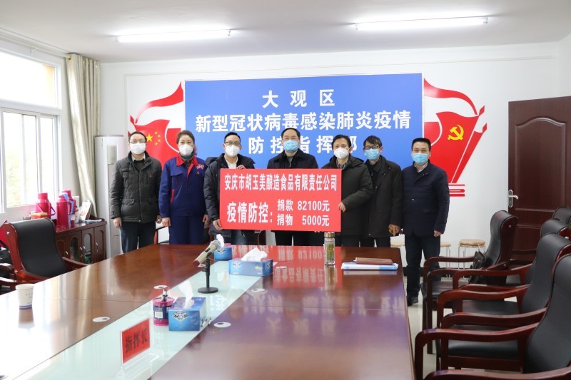 疫情防控沒有局外人,唯有眾志成城、守望相助,方能共渡難關。盡管來勢洶洶的疫情給公司帶來嚴峻的挑戰(zhàn)和沖擊,但胡玉美人并沒有局限于自身一時得失,而是始終將國家利益擺在第一位。公司積極發(fā)起抗疫募捐倡議,董事長顏志勇帶頭捐款10000元,公司273人全員踴躍參與,共籌得善款82100元,全部捐給大觀區(qū)疫情防控指揮部。此外,公司還捐贈了價值5000元的胡玉美蠶小逗系列醬。涓滴小善,匯聚大愛,在這個特殊的時刻,胡玉美人雖無法到一線抗擊疫情,但會在平凡的崗位上為疫情防控工作盡一份綿薄之力!