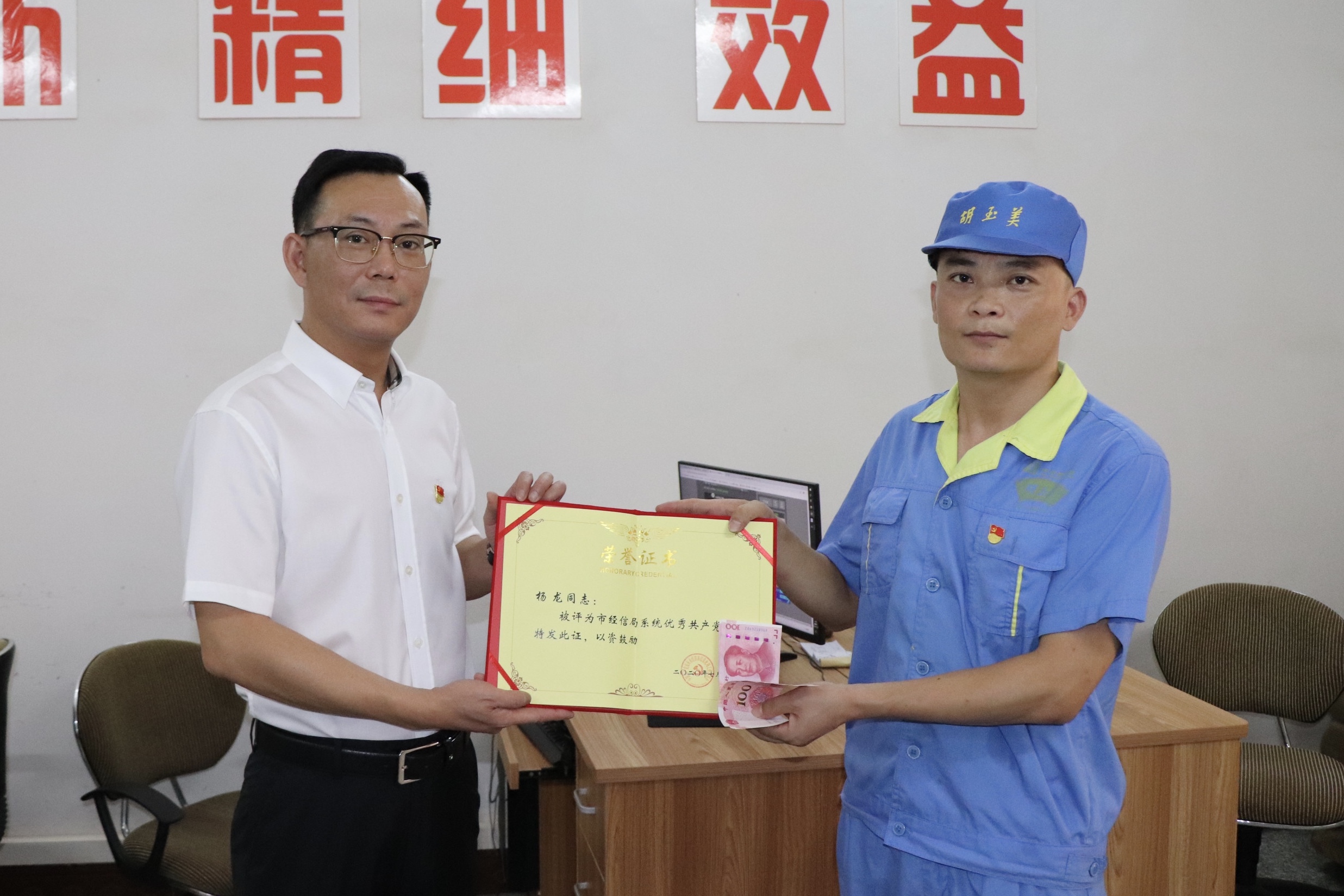 7月23日,公司黨委書記、董事長顏志勇在黨委副書記潘敏的陪同下深入生產(chǎn)一線,送獎(jiǎng)到崗,為車間黨支部、優(yōu)秀共產(chǎn)黨員和優(yōu)秀黨務(wù)工作者頒發(fā)榮譽(yù)證書并帶去慰問金。黨委書記顏志勇代表公司黨委囑咐他們珍惜榮譽(yù),以更加堅(jiān)強(qiáng)的黨性、更加務(wù)實(shí)的作風(fēng)、更加強(qiáng)烈的責(zé)任感和使命感,扎實(shí)工作,再立新功。